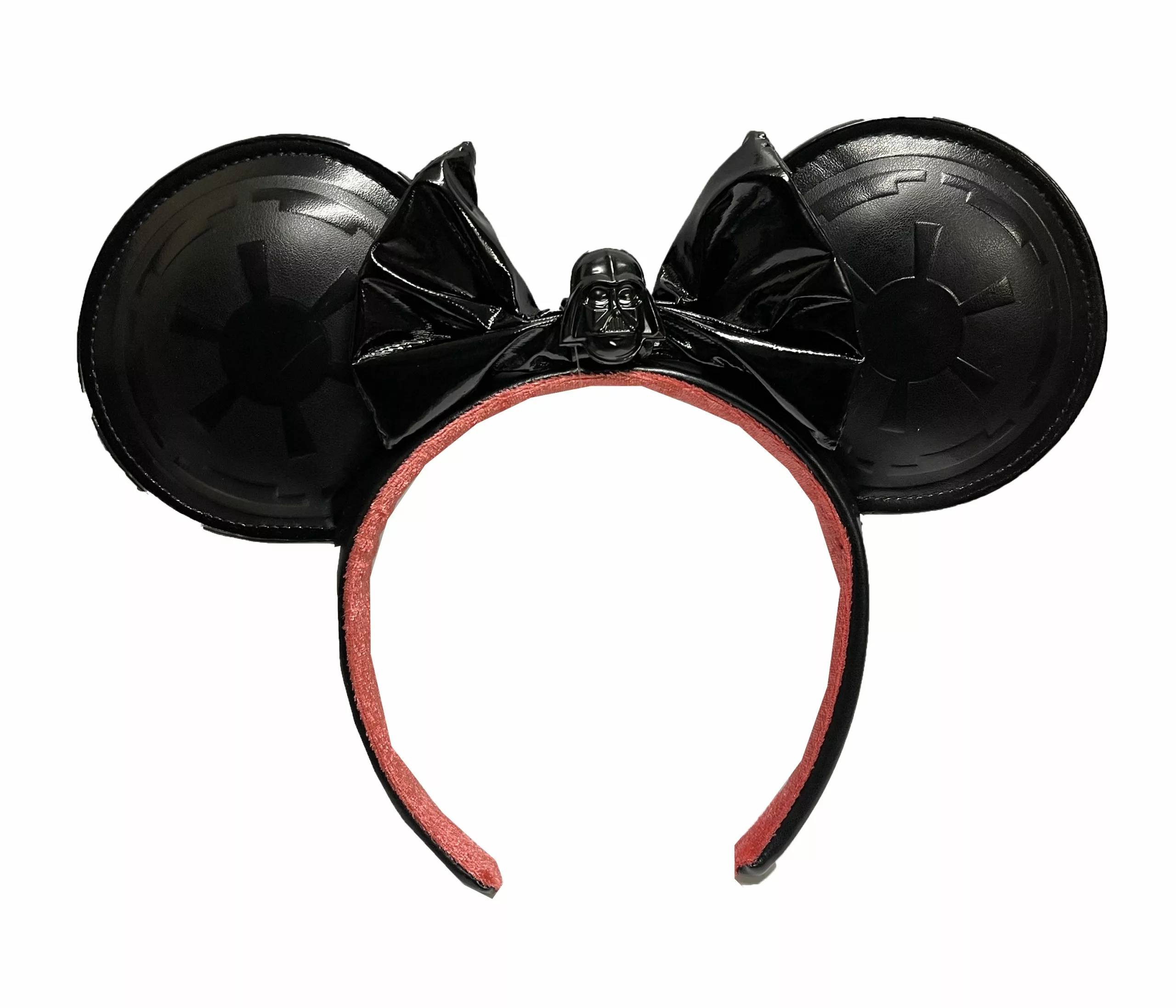 Rule the Galaxy with these Star Wars Minnie Mouse Darth Vader Ears. Features the words Rule the Galaxy on the Back Ears, and Darth Vader emblem in the center of Minnies Ears.