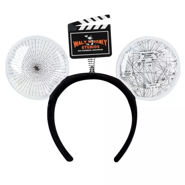 Join the Disney100 celebration wearing Mickey’s movieland ear headband with a vintage-style Walt Disney Studios clapboard topper, printed production flow chart on confetti-filled ears and embroidered Walt Disney signature on band.