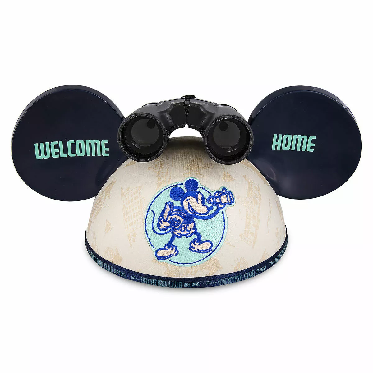 Welcome home to Disney Vacation Club! Members can wiggle their ears like good Mouseketeers in this classic cap. With a Mickey embroidered patch on the front and decorative binoculars topping the dome, there is no better way to travel.